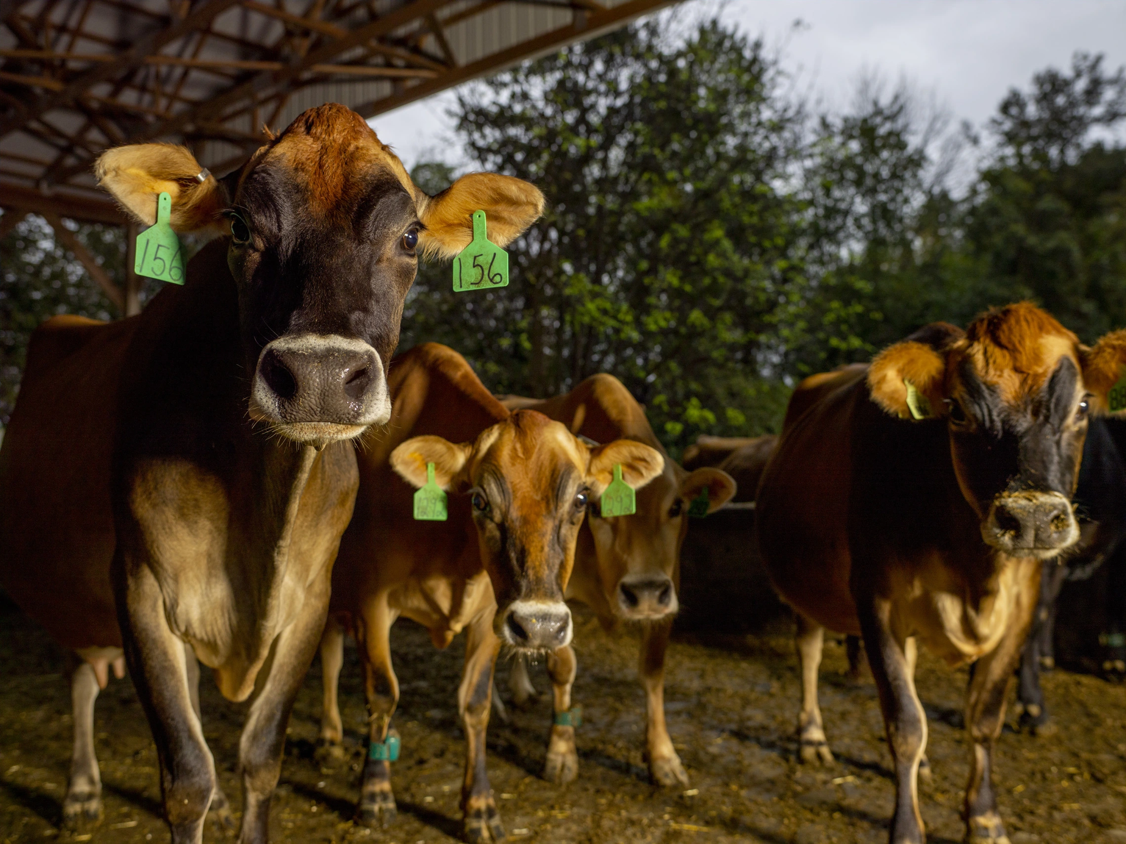 “You always want to give your cows a clean, dry place to chill out in,” she explains. Since cows tend to thrive at a particular temperature, there are fans installed throughout the Cow Comfort Inn barns regulating the air. Sprinklers are also triggered automatically to cool the cows every so often.