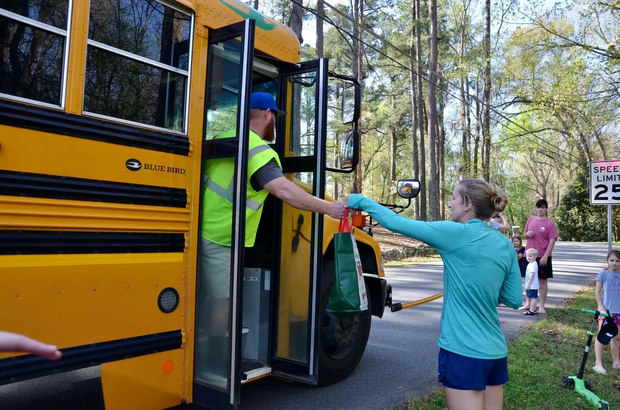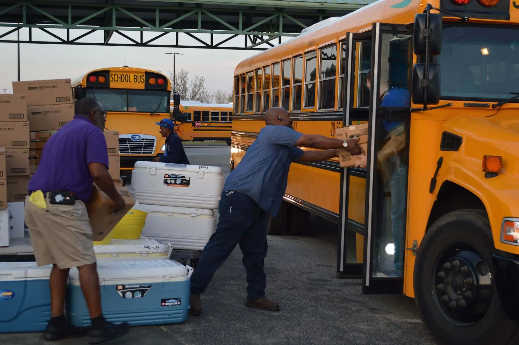 She leads a team of 150 county employees who orchestrate the daily delivery of 5,000 meals via 34 school bus routes. While there are 4,300 students to feed, Martin’s team makes extras for family members who may be going without. Each morning before sunrise, workers pack every bus row with breakfast, lunch and dinner – plus coolers of milk – and head out for their daily deliveries.