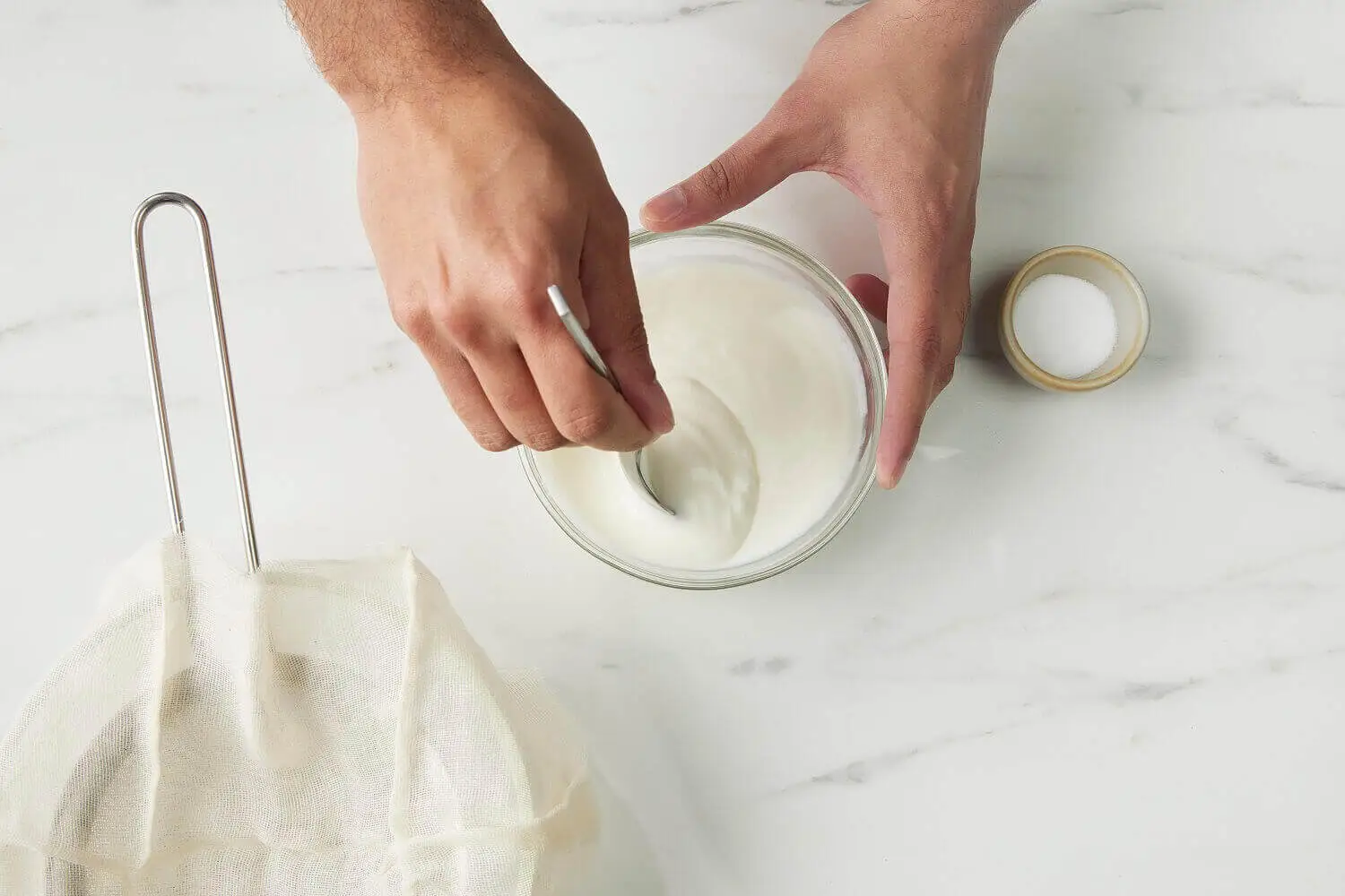 - Store in the refrigerator for 24 to 48 hours (the liquid whey will drain into the bowl).