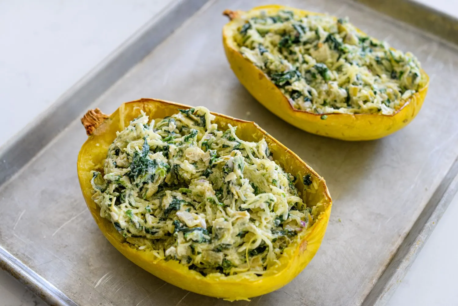 Cheesy Spinach Artichoke Stuffed Spaghetti Squash