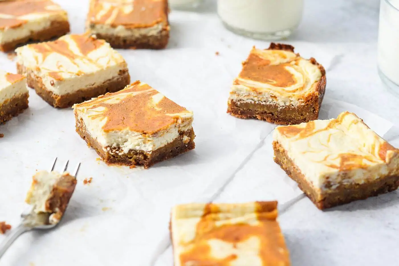 If you’re looking for nostalgia and decadence in a bar, look no further than this swirled pumpkin cheesecake recipe. The creamy cheesecake blankets a layer of pumpkin filling—all on a graham cracker crust that melts in the mouth to buttery perfection. Discover a pumpkin pie and cheesecake flavor explosion with these pumpkin cheesecake squares at home!